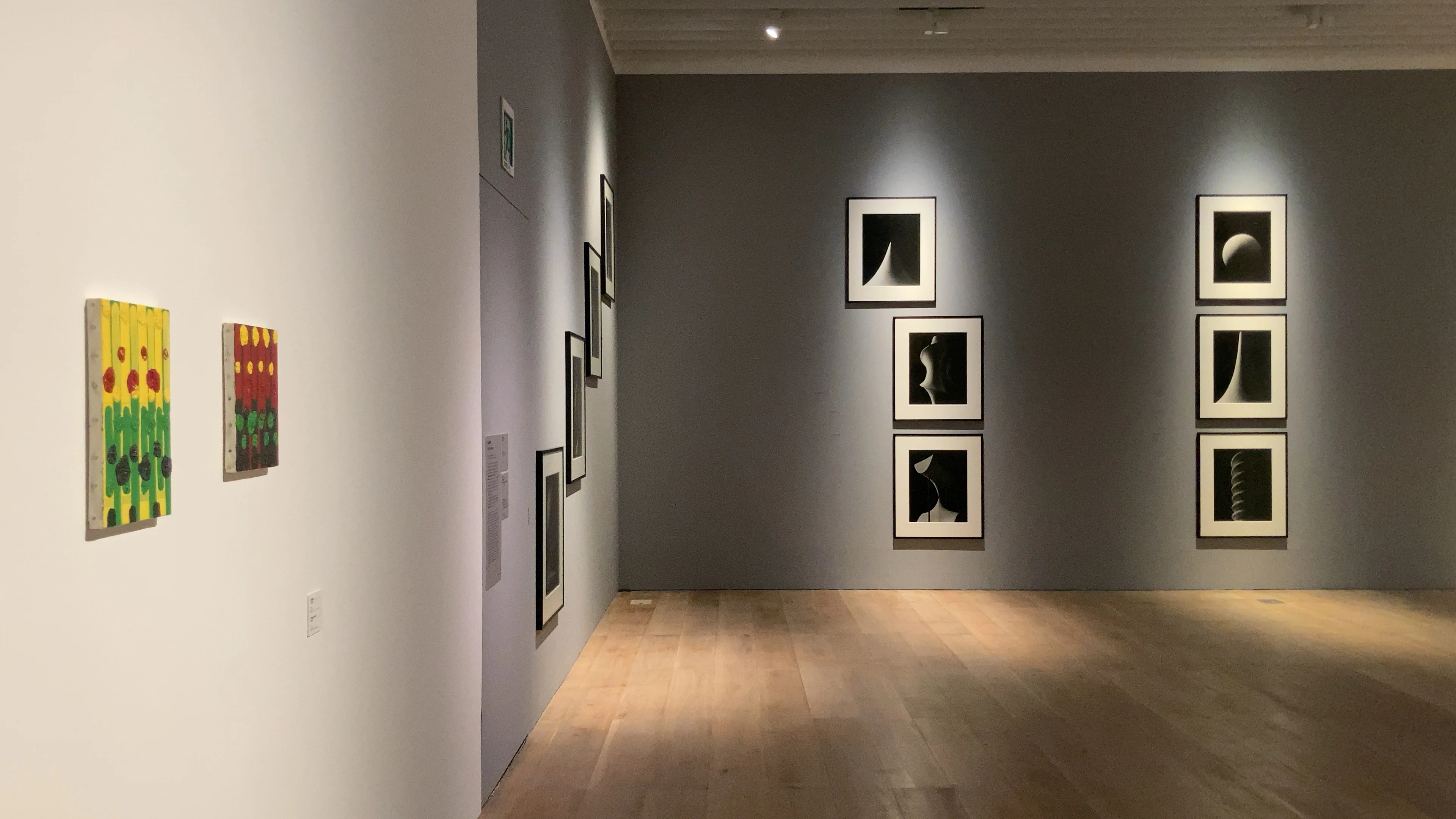杉本博司《観念の形》(2004)は、東京大学総合研究博物館所蔵の数理模型を撮影した写真シリーズ。今回、三次元曲線が美しい幾何学模型群「Surface」全13点を初めてそろって公開した。数学的な概念をパフォーマンスに投影する笹本晃の映像作品、描く対象から導き出した数値を配色や構図に転換する片山真妃の絵画作品も紹介されている。