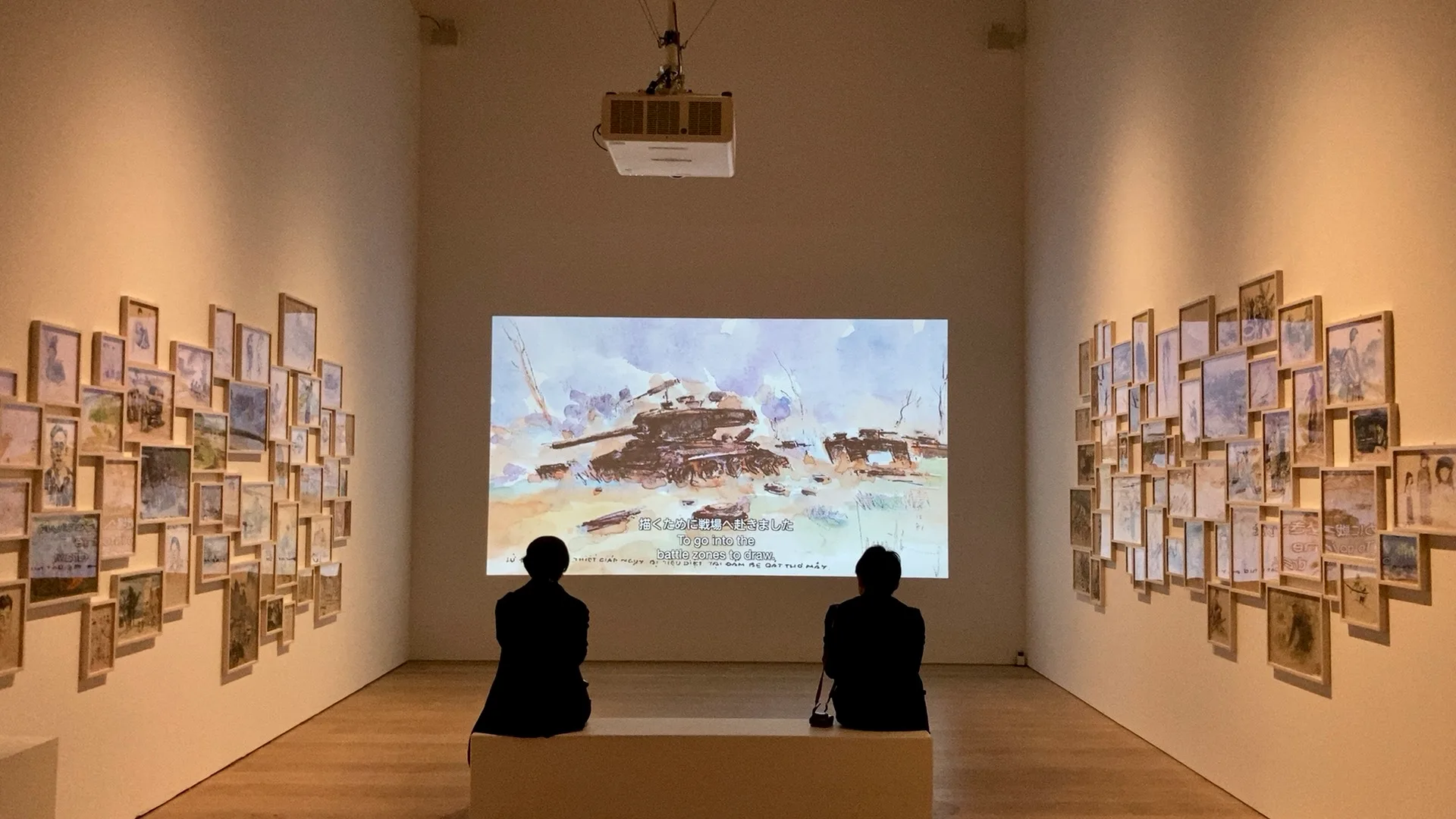 何気ない風景が場所の意味を知った途端、違う表情を帯び始めるーー。そんな経験をしたのが、カンボジアのヴァンディー・ラッタナとシリア出身のハラーイル・サルキシアンによる写真群。前者はベトナム戦争で米軍が落とした爆撃により生じた池、後者はかつて公開処刑が行われた様々な都市の広場を撮影した。2009年にアジア初の大規模個展を同館で行ったベトナムのディン・Q・レによる、ベトナム戦争の従軍画家をテーマにしたインスタレーションもある。