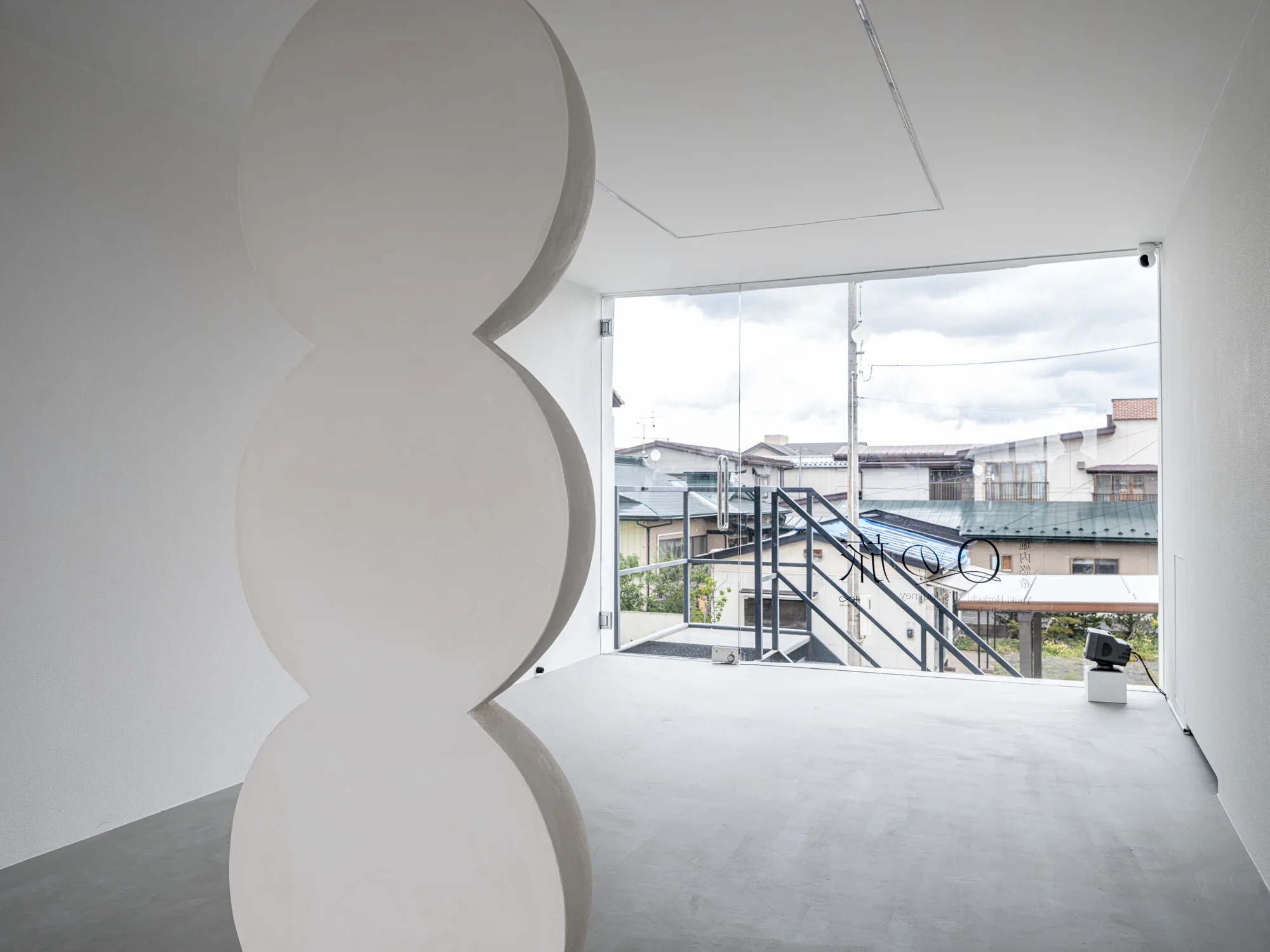 十和田市現代美術館から歩いて5分ほどの場所に位置する《space》は、2020年に現代アートチーム目[mé]が制作したもの。建物の2階部分は展示室となっており、これまで若手アーティストによる実験的な表現を紹介する場として活用されてきた。