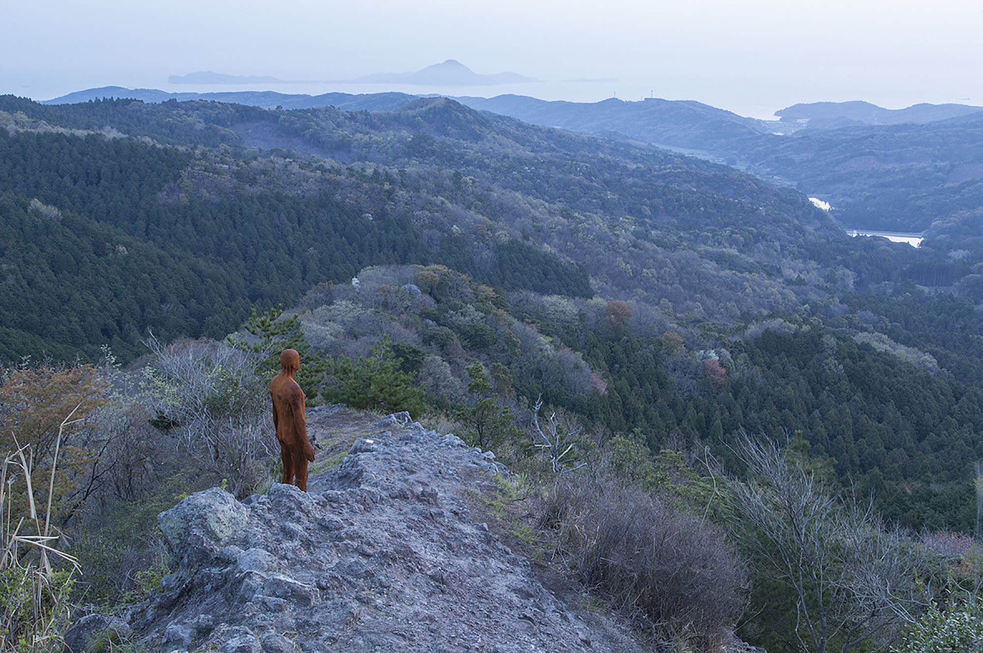The celebrated British sculptor Antony Gormley chose the edge of a cliff on Oita’s Kunisaki Peninsula as one of the sites for his “Another Time” series. Reaching Another Time XX, an iron sculpture of a man gazing east out onto the horizon, requires a strenuous trek up the mountain. Installing the work required careful designs, multiple attempts, and the expertise of locals. The monument stands as “an attempt to bear witness to what it is like to be alive and alone in space and time.”