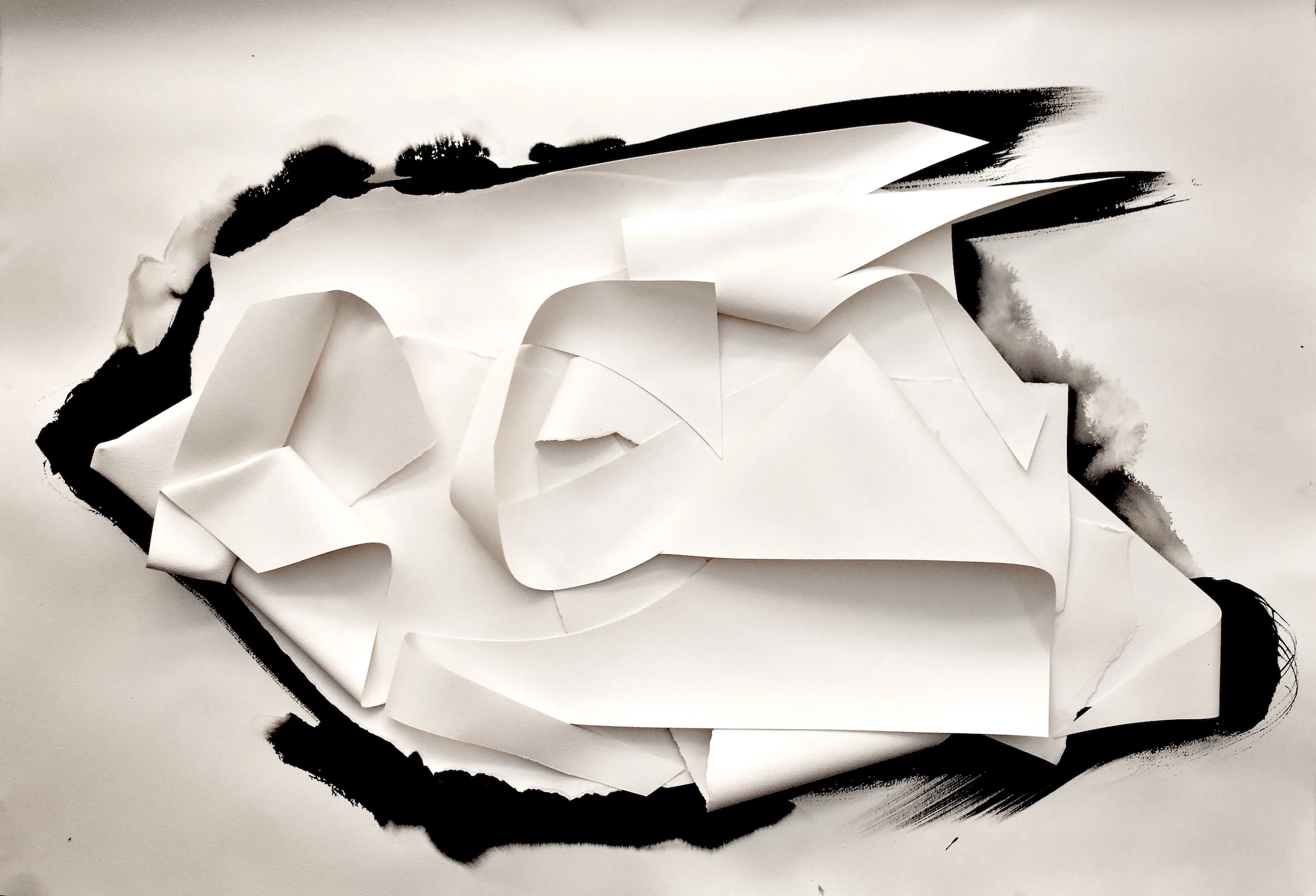 Ayako is clearly a disciplined and accomplished artist, but is also delightfully prosaic about her practice. Her site-referenced abstract sculptures seem to be out of this world; Their hard, monochromatic forms test the purity of form, colour, and the limits of rigid materiality with musical expressiveness. And yet, these works are also of this world, formed from its elemental metals. They split, splice, and even create space within natural and urban landscapes. This applies equally to her smaller scaled and more intimate works, and to the recent works using paper and ink to fold space. Ayako is guided by an abiding curiosity about her materials and an ethos of just doing in her practice. Amid a shrinking divide between artist and artisan, where values of consistency and craft continue quite apart from issues of ego and promotion, the words of Masako Shirasu remind us: