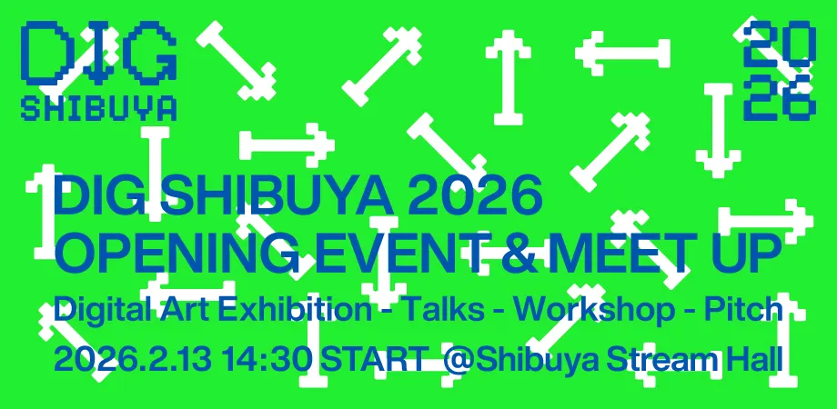 That same day, Shibuya Stream Hall hosts the "DIG SHIBUYA 2026 Opening Event & Meet-Up; Artists, Startups, and Creative Technology," bringing together international artists, creators, and creative-tech startups. Beyond talk sessions and startup pitches, the event includes a hands-on workshop led by Korean digital artist Seo Hyojung, who co-created the festival's visual identity, and offers participants an opportunity to explore motion and generative design.