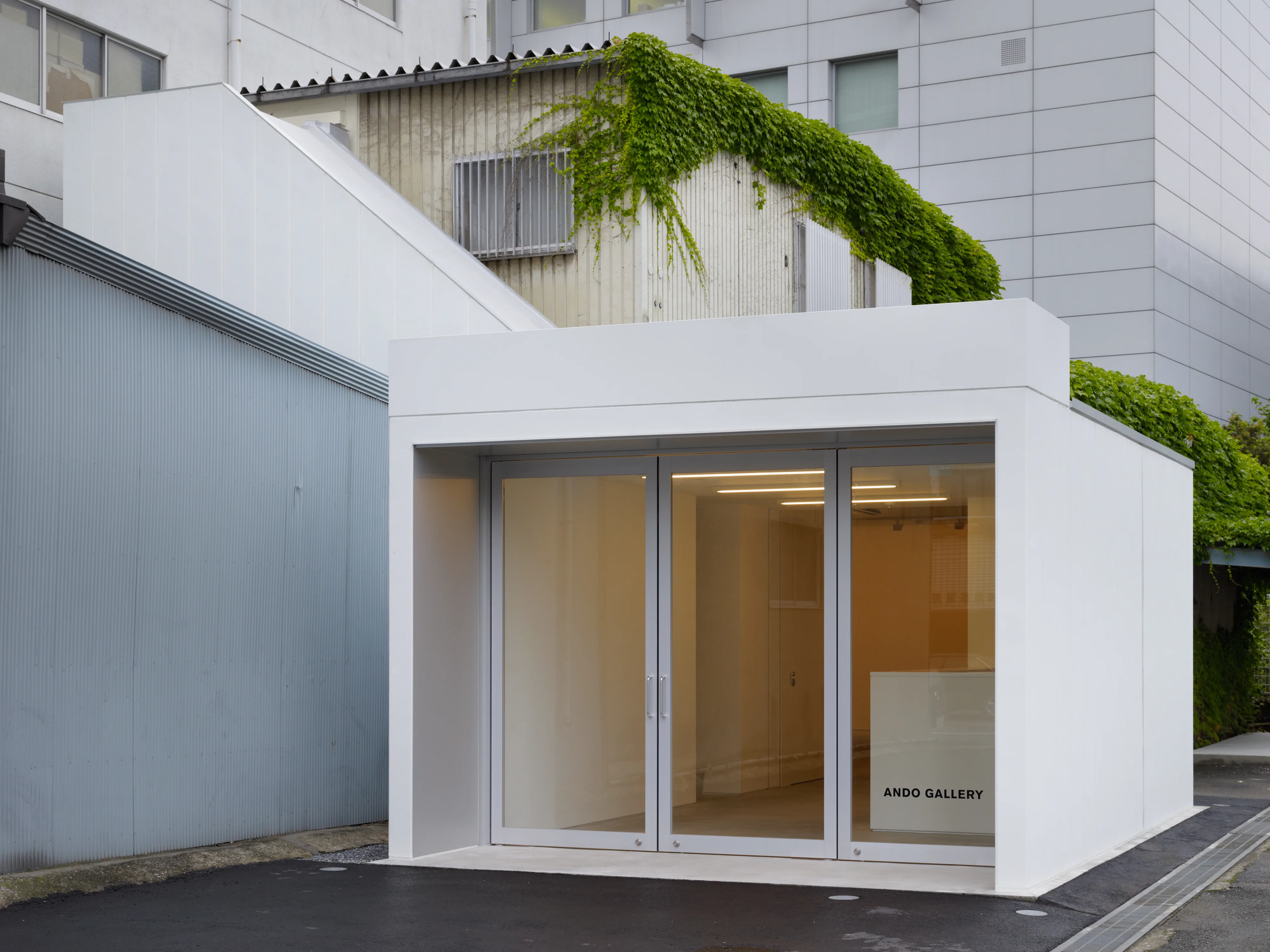 Turning back, let's head towards the Tokyo Metropolitan Art Museum. Ando Gallery, which opened in 2008, is located close to the Tokyo Metropolitan Art Museum. The gallery space, renovated from a warehouse entwined with ivy, has an impressive exterior with a predominantly white color scheme.