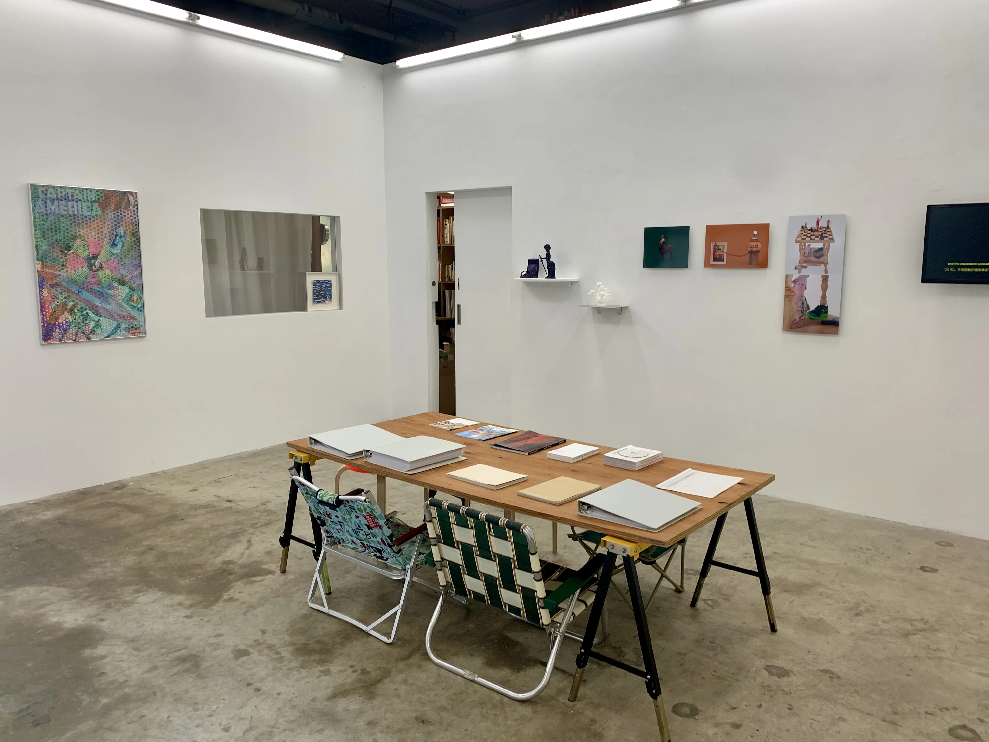 When we visited, they were hosting a solo exhibition by Shunsuke Imai titled Red, Green, Blue, Yellow, and White. The works, capturing folded and reflected patterns on paper, seemed to invite playful exploration of color and form, offering a sense of active engagement with the viewer rather than imposing a strong impression.