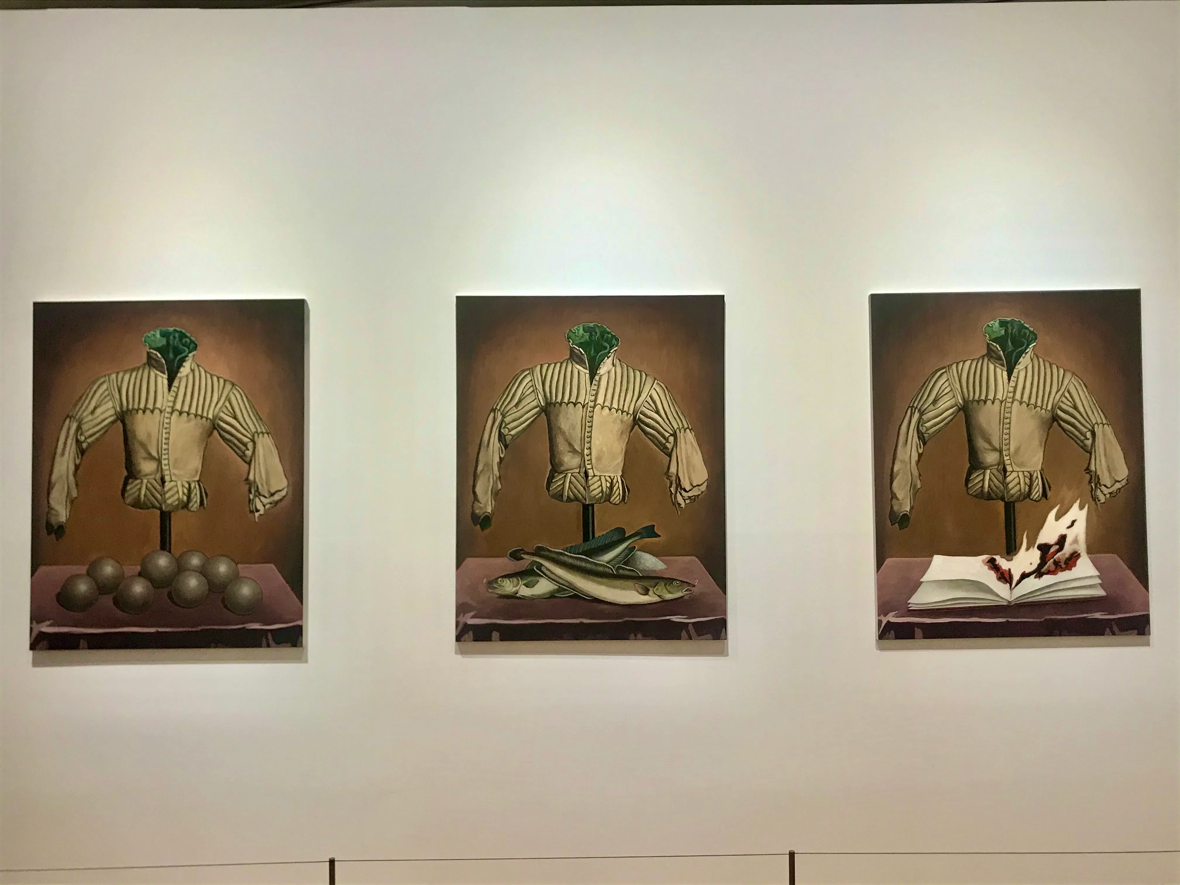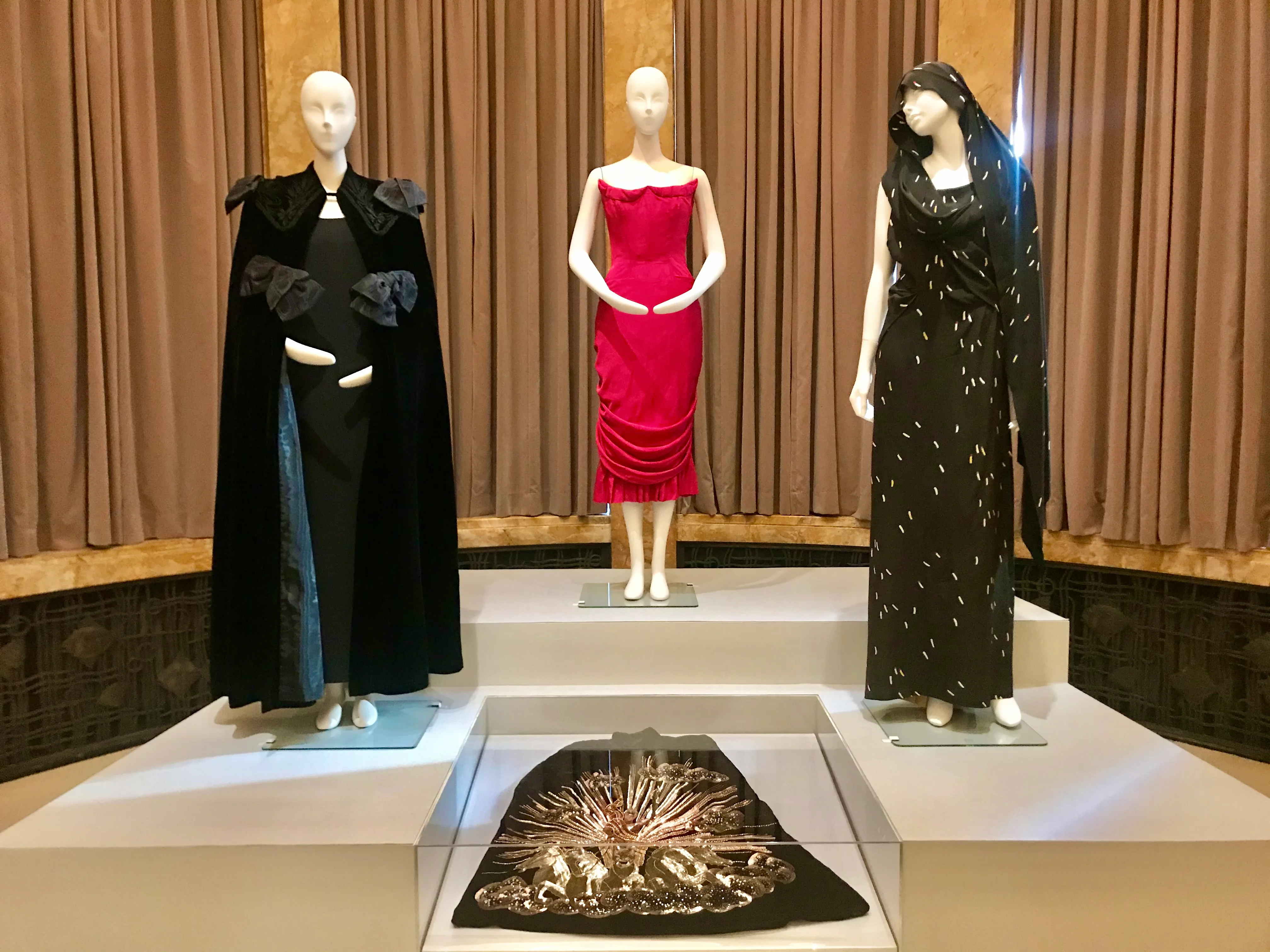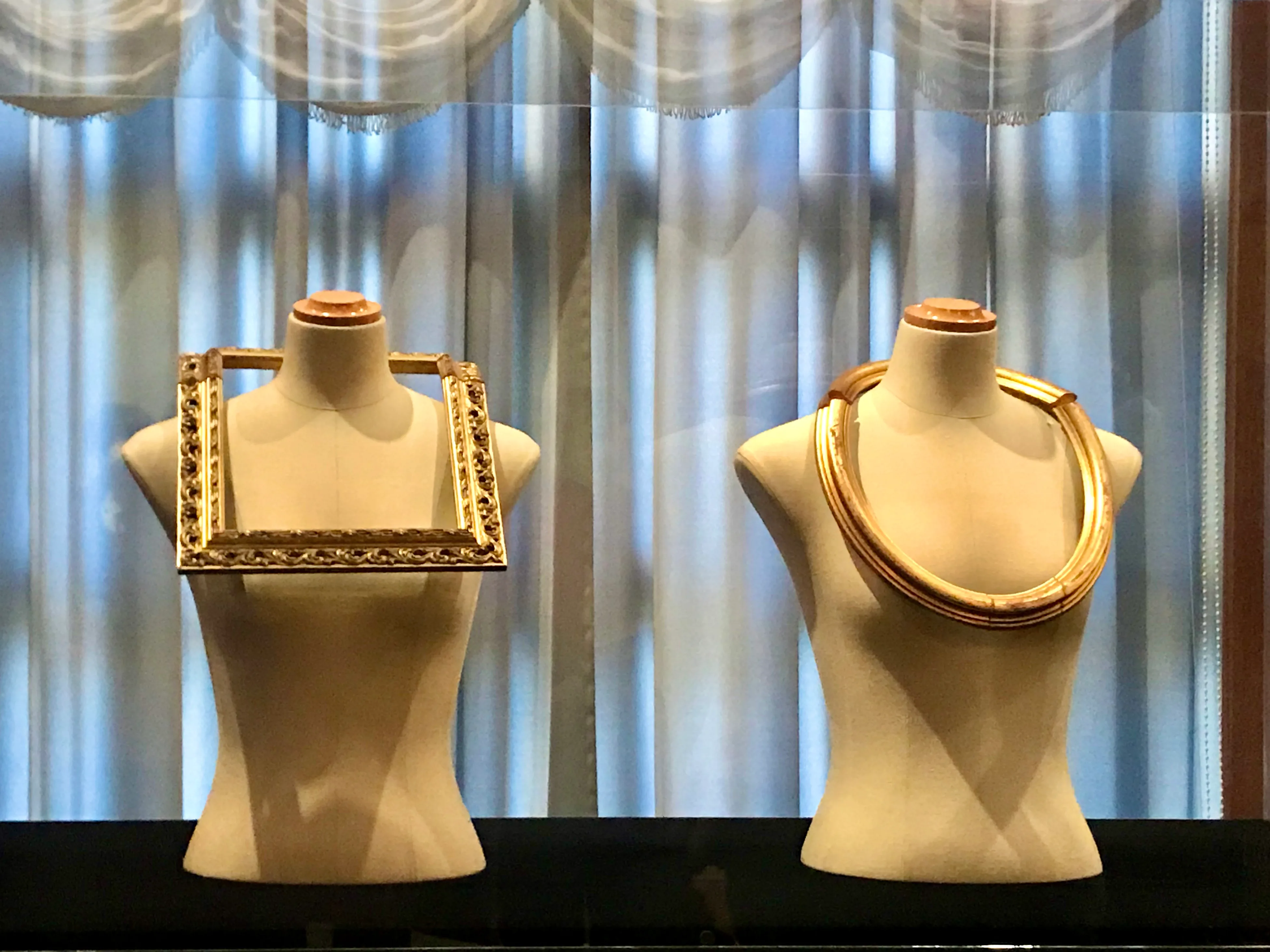 Non-fashion displays in the exhibition include paintings and sculptures by contemporary artists as well as 20th century titans like Salvador Dali, Man Ray, and Giorgio de Chirico. Ukiyo-e prints and vintage issues of Harper's Bazaar and Vogue are also among the displays.