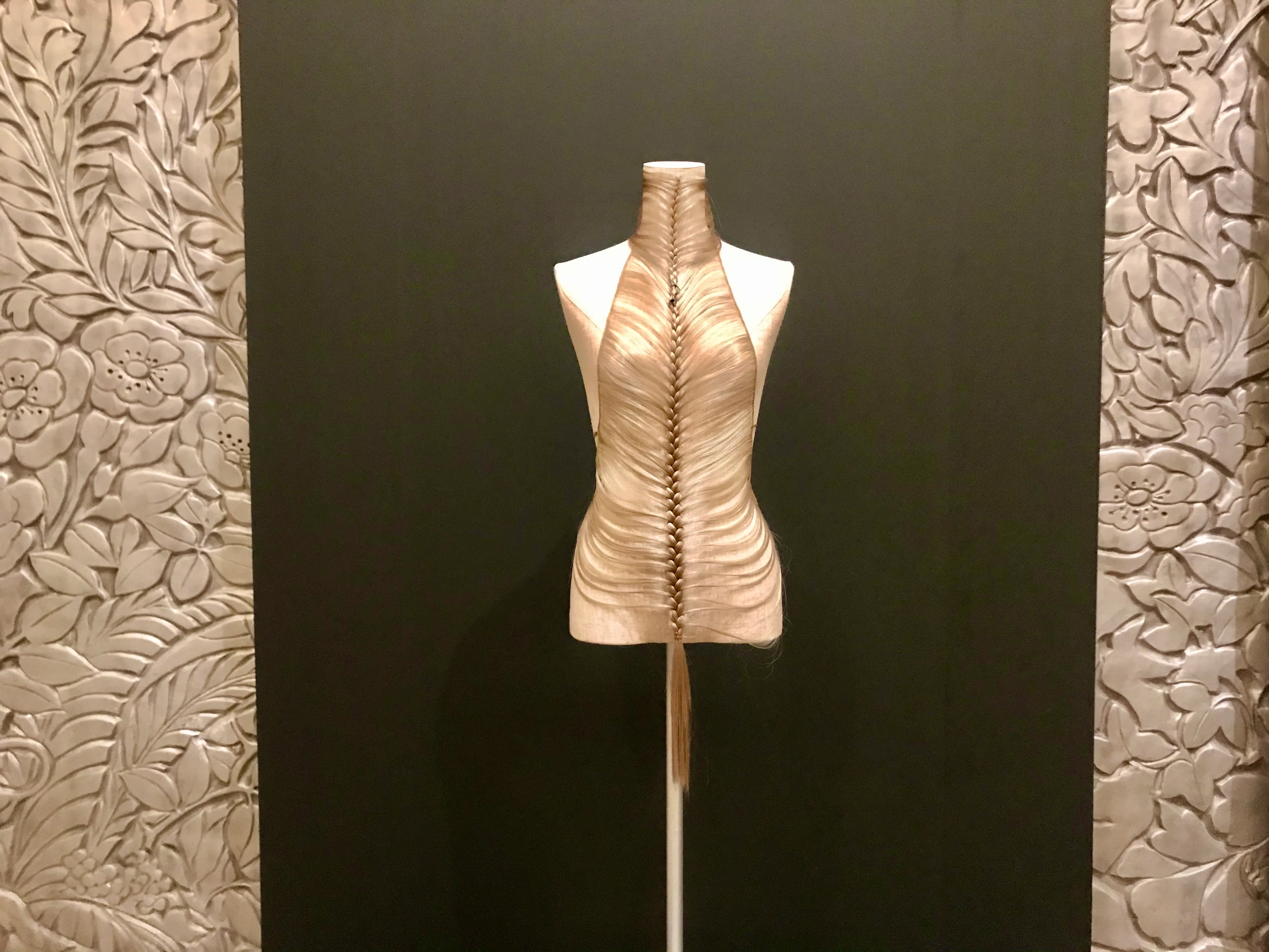 A trend of weaving hair into garments that emerged in the 19th century has carried on into the present. High-end designer Martin Margiela displays his flowing Dress (2004) hemmed with brown-shaded hair and accented with a beaver fur necklace. The sensual Body Accessory (2004) by Japanese designer Yoichi Nagasawa is woven with braided artificial hair and truly catches the eye.