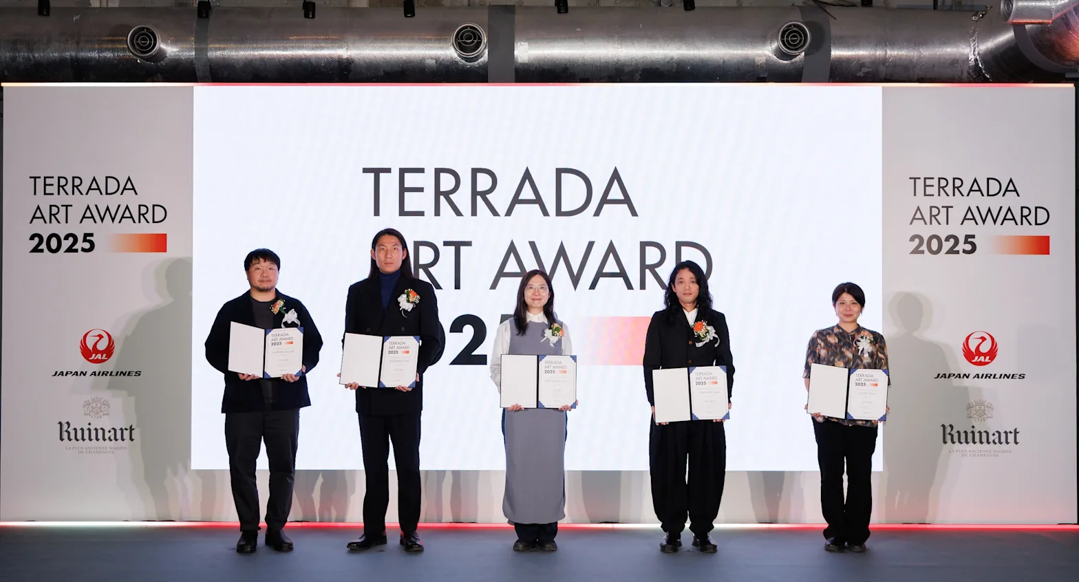 “TERRADA ART AWARD 2025” Award Ceremony From left: Daisuke Kuroda, Yuki Kobayashi, Sakura Koretsune, Yuske Taninaka, and Claire Fujita Photo by Takanori Tsukiji