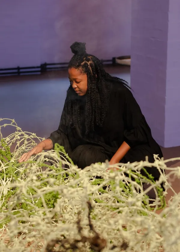 Lungiswa Gqunta was born in Port Elizabeth, South Africa, in 1990 and now resides in Cape Town. She uses everyday objects in her three-dimensional works to express the inequalities resulting from patriarchy and colonialism in South African society. For this exhibition, Gqunta plans to create a dynamic piece out of barbed wire.