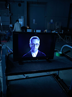 このインスタレーションは、レトロフューチャーな宇宙船を模した6台のテレビで構成されています。テレビのパネルは切り開かれ、電気部品、配線、回路基板といった複雑な内部構造を露わにしています。これらのテレビスクリーンでは、映像として浮かび上がったニコラス・ウィンディング・レフンと小島秀夫が深く思索的な対話を交わします。英語と日本語、それぞれの言葉で語られる彼らの声が来場者を誘い、発見と解釈の親密な体験へと導き、その創造の瞬間を目の当たりにさせます。彼らの対話は、友情、クリエイティブなコラボレーション、新しいテクノロジーと創造性、アイデンティティとコミュニケーション、死とその先に残るものなど、多岐にわたるテーマを探ります。